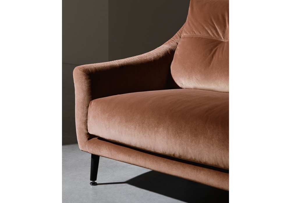 Ascot designed by Tiziano Carnieletto for Twils is a sofa with completely removable covers, with feather padding and internal structure in solid poplar and fir wood. The upholstery is available in different fabrics and colours. The base is chosen between feet and sled, in various finishes.