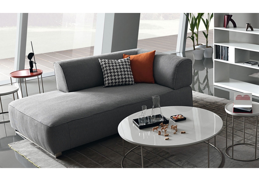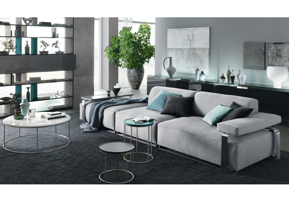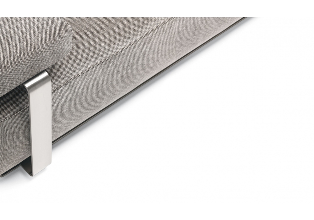 Cannes designed by Ferruccio Laviani for MisuraEmme is a sofa available in a fixed and modular version characterized by multiple composition possibilities, made up of 9 basic elements that can be combined to form linear and angular compositions. Supporting structure in wood with elastic straps, covered with polyurethane foam in different densities and a feather mattress on the seat and back. Metal parts in 524 gunmetal finish. Available with or without decorative side irons. Upholstery in fabric or leather.