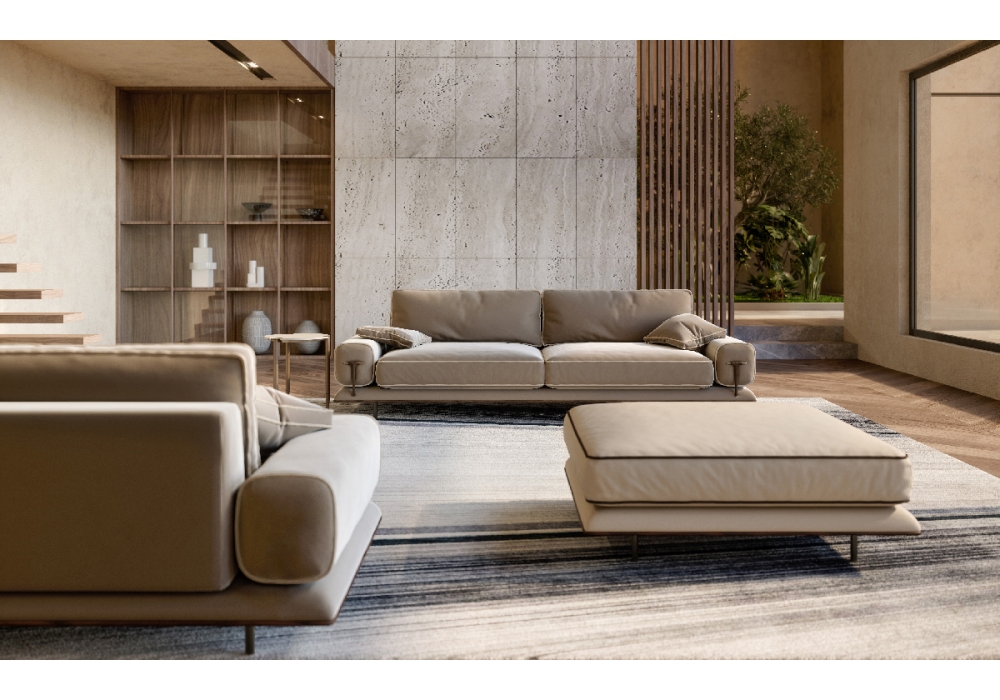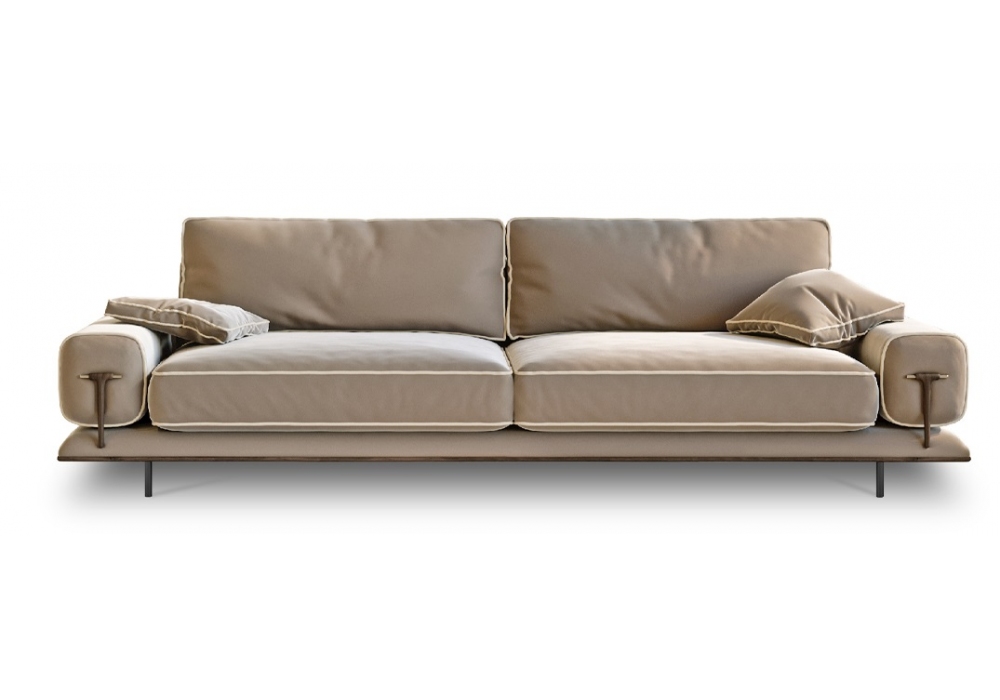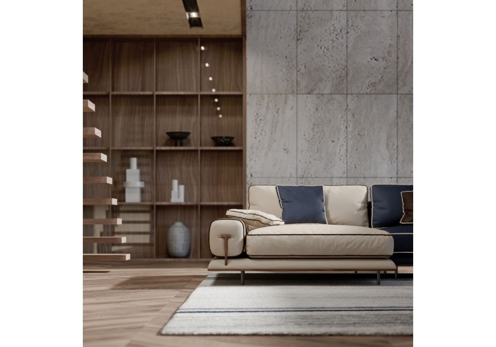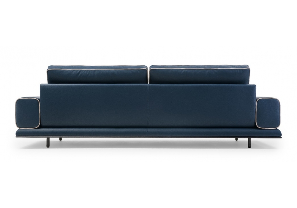 Blues designed by Giuseppe Viganò for Turri is a sofa with solid wood and plywood structure padded with multi-density polyurethane foam and metal supporting structure. Upholstery in different non-removable fabrics or leathers. The two-tone version is available upon request. The feet are made of metal in anthracite gray finish with feet in plastic material. Details in solid walnut with metal parts in different finishes.