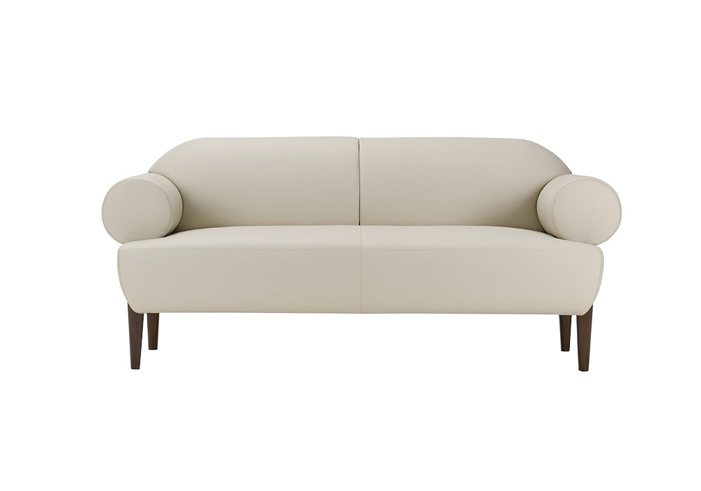 Silhouette designed by Gensler for Tutti is a sofa with structure in plywood and solid wood with upholstery in different fabrics or leathers. Legs in eucalyptus-stained solid wood.