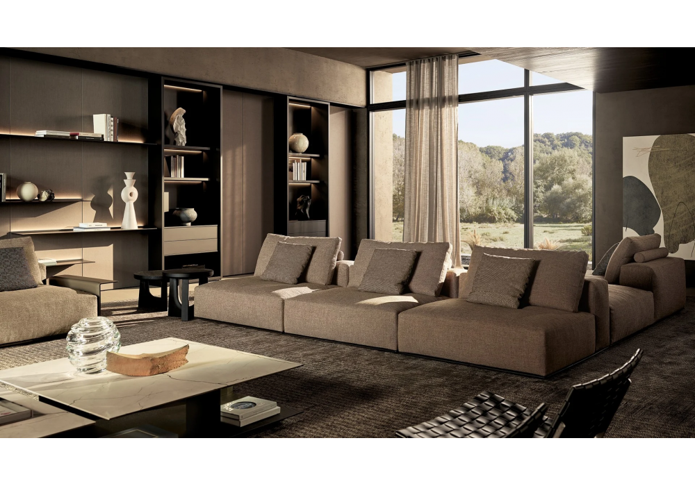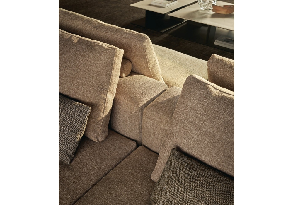 Westside Soft designed by Jean Marie Massaud for Poliform is a sofa with down padding. Composed of various upholstered modules, the set can be assembled in different configurations – from a two-sided island to a classic corner sofa. Westside is thus configured not only as an archetype of conviviality, but also of comfort.