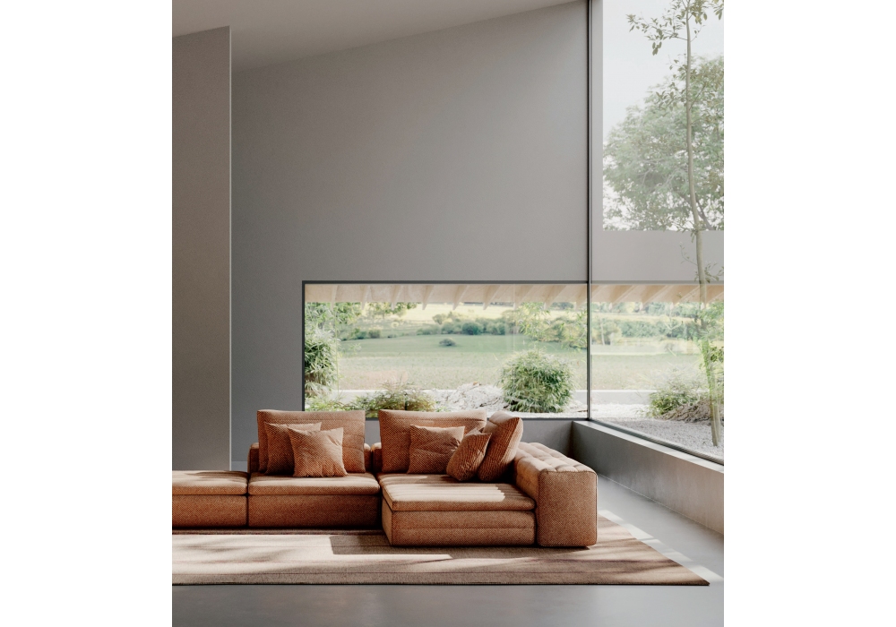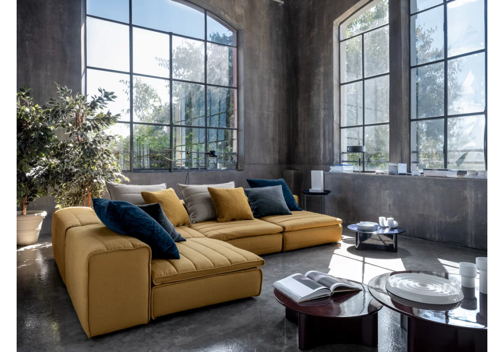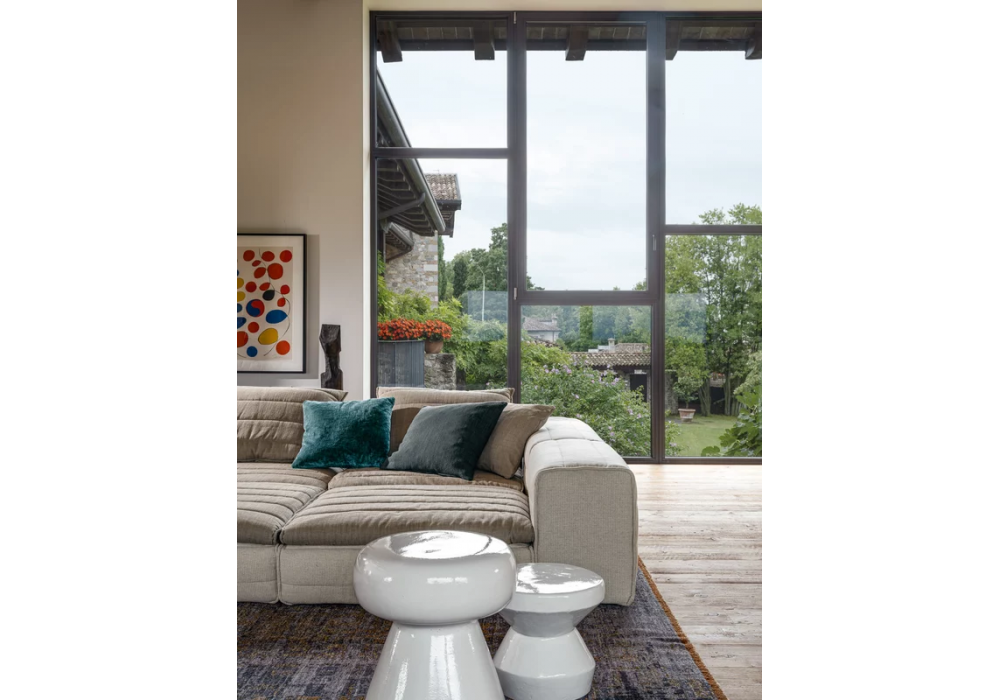 Samet Low designed by Federica Biasi for Gervasoni is a modular sofa made with a fixed topper, polyurethane foam padding and removable fabric upholstery.