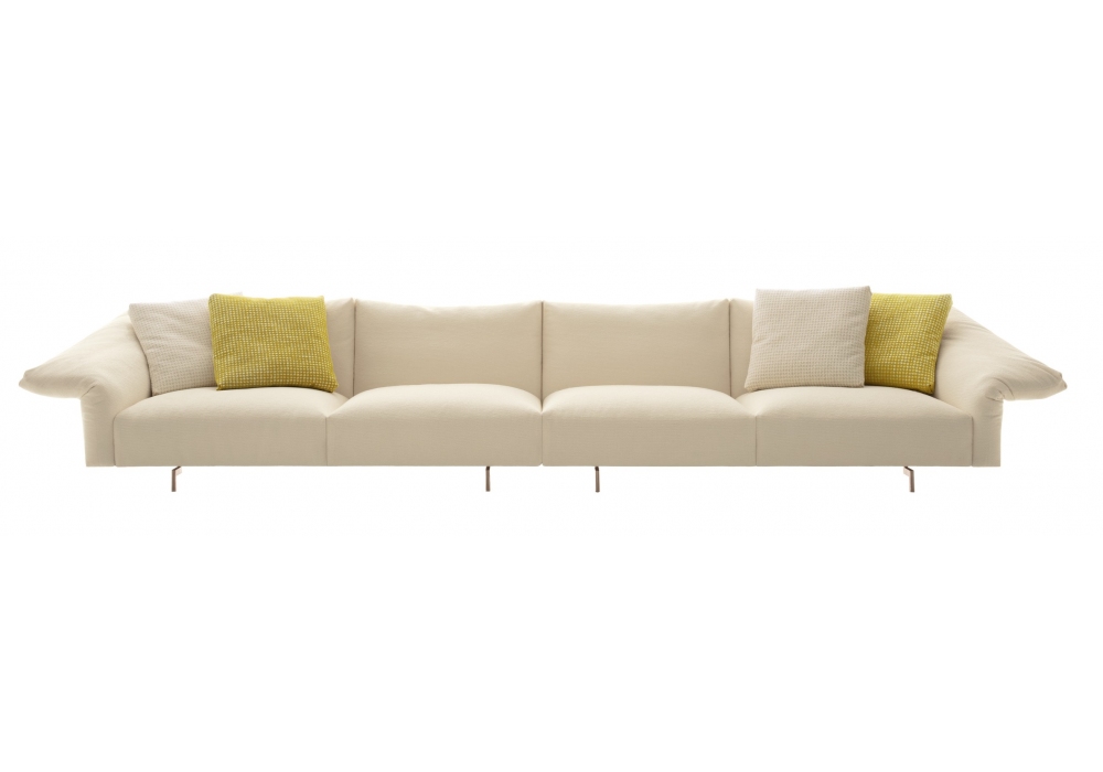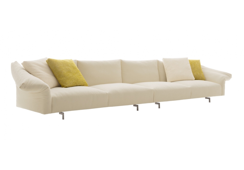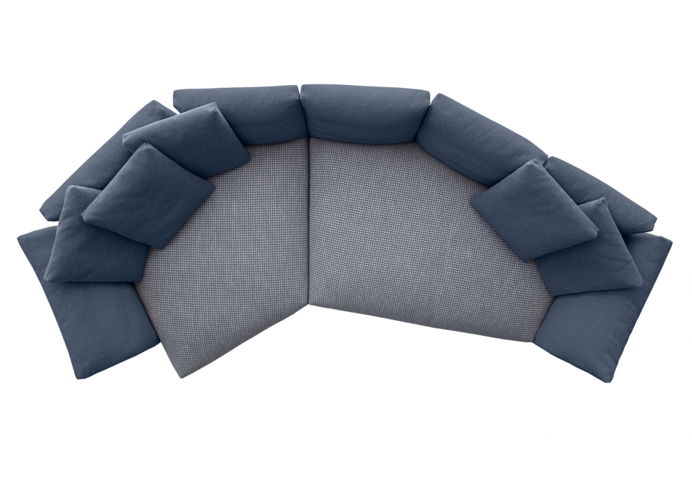 Dambo designed by Piero Lissoni for B&B Italia is a modular sofa composed of irregular pentagons and rectangular modules, which combines more complex geometric shapes with linear elements, lending itself to multiple compositions and environments. The armrests look like petals which, thanks to a joint, can be lowered and adjusted as desired.