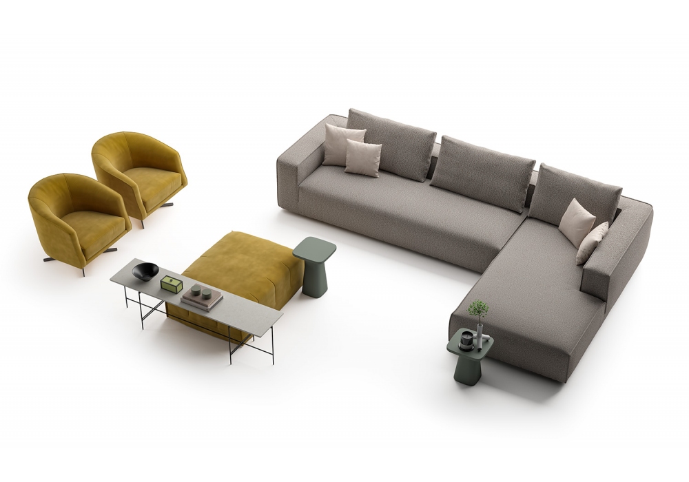 Vittorio designed and produced by Marac is a sofa with structure in fir wood (Picea Abies) and plywood, with elastic straps. Upholstery in different finishes, completely removable in fabric, fixed in leather. Available in various sizes.