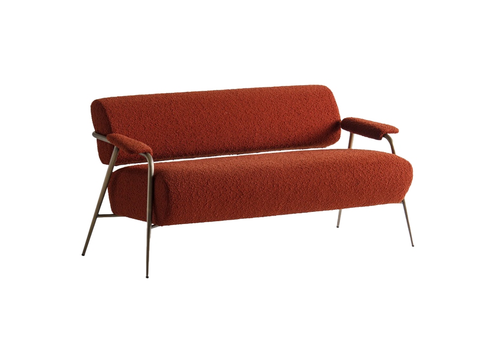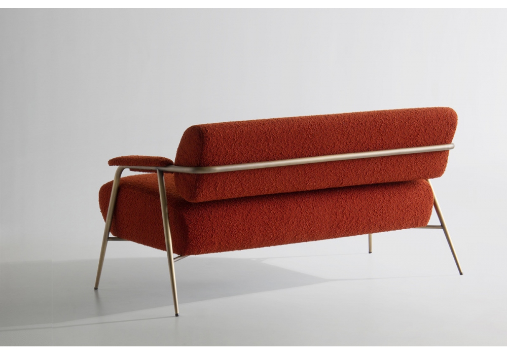 Stay designed by StorageMilano for Potocco is a sofa with upholstered seat and back in fire retardant polyurethane foam. Structure in embossed anthracite painted metal tubing or burnished brass. Upholstery in leather, fabric or imitation leather.