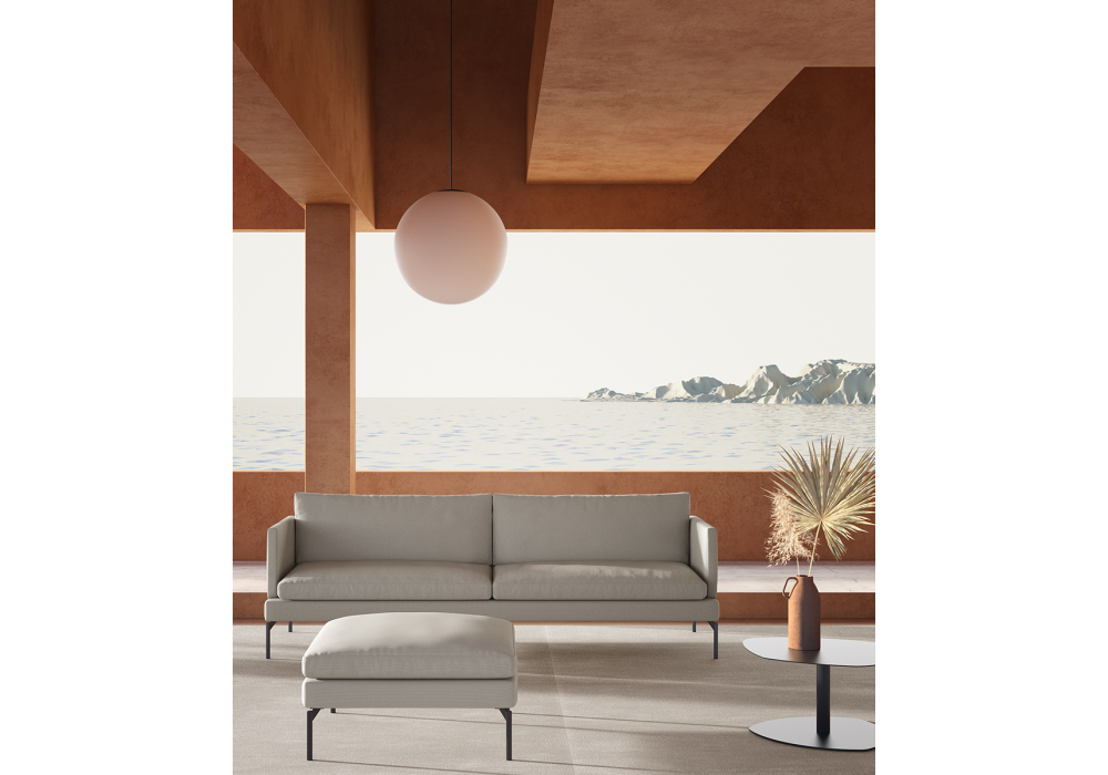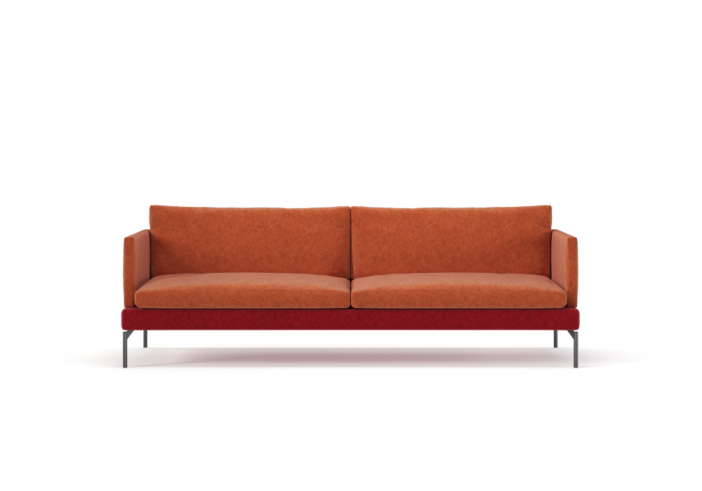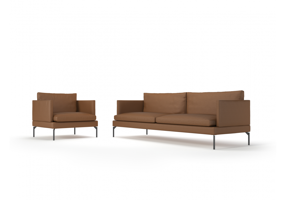 Saudade designed by Edi & Paolo Ciani Design for Sitlosophy is a two or three seater sofa with structure in solid fir and plywood and padding in non-deformable polyurethane foam with covering in different fabrics, leathers or eco-leathers. The feet are made of black epoxy painted steel.