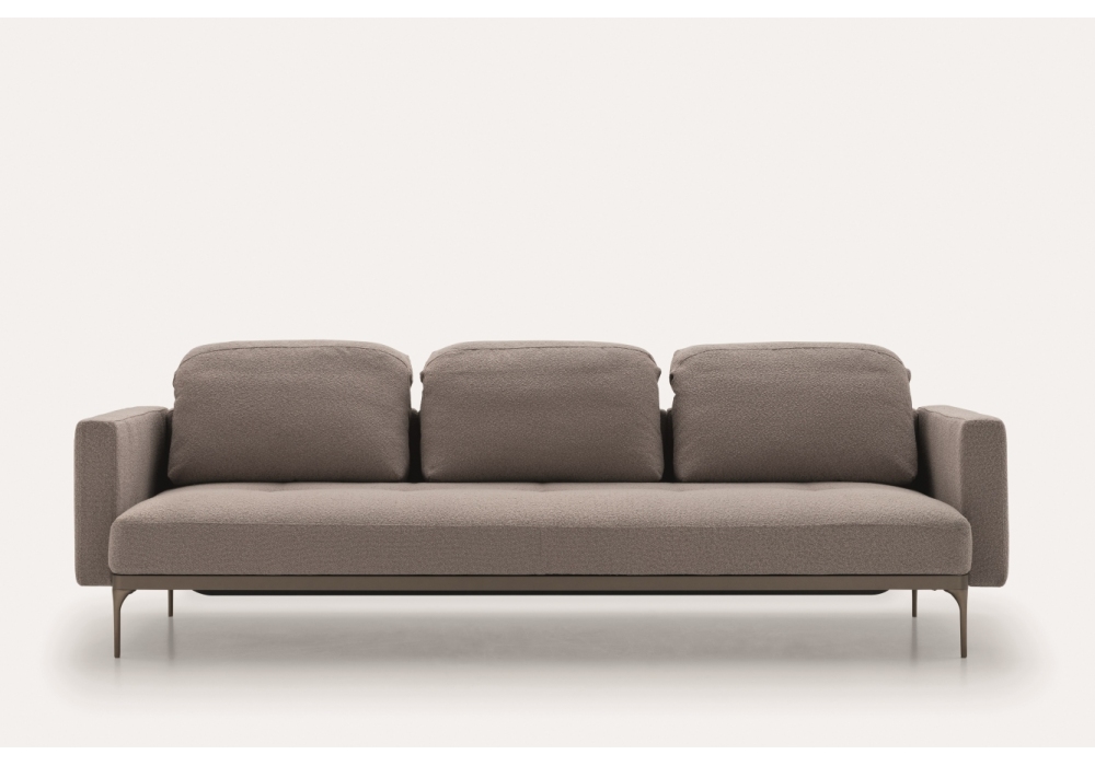 Ada designed by Stefano Spessotto for Ditre Italia is a sofa characterized by metal reinforcing bars, slim back support in curved plywood. Upholstered seat and back with fabric or leather upholstery. Available in different finishes and configurations.
