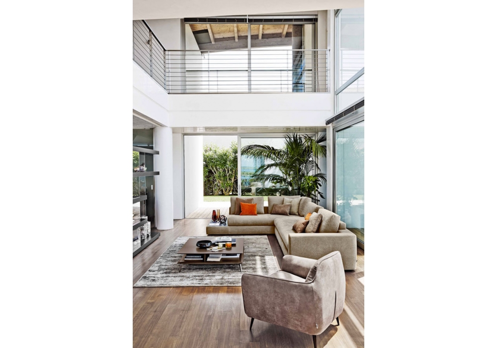 Bijoux designed by Stefano Spessotto & Lorella Agnoletto for Ditre Italia is a sofa characterized by standard feet in wood with metallic edge, optional feet with suspended effect or with wooden base. Fabric lining. Available in different finishes and configurations.