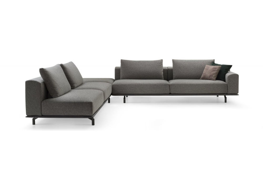 Fly designed by Michele Mantovani for Bodema is a linear or modular sofa made with a poplar plywood structure covered in polyurethane foam of different densities. Seat and backrest padding in polyurethane foam of different densities. Base in solid ash wood, almond stained and anthracite painted metal feet.