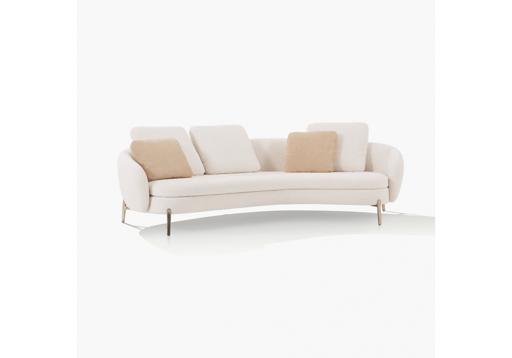 Orbis designed by Emmanuel Gallina for Poliform is a sofa with structure in metal and flexible singledensity polyurethane, seat in flexible polyurethane with differentiated densities, pre-cover in cotton canvas. Backrest cushion for sofa in flexible polyurethane with pre-cover in cotton canvas and down. Feet in glossy and mat painted metal light sheer or dark sheer. Removable cover in fabric or leather.