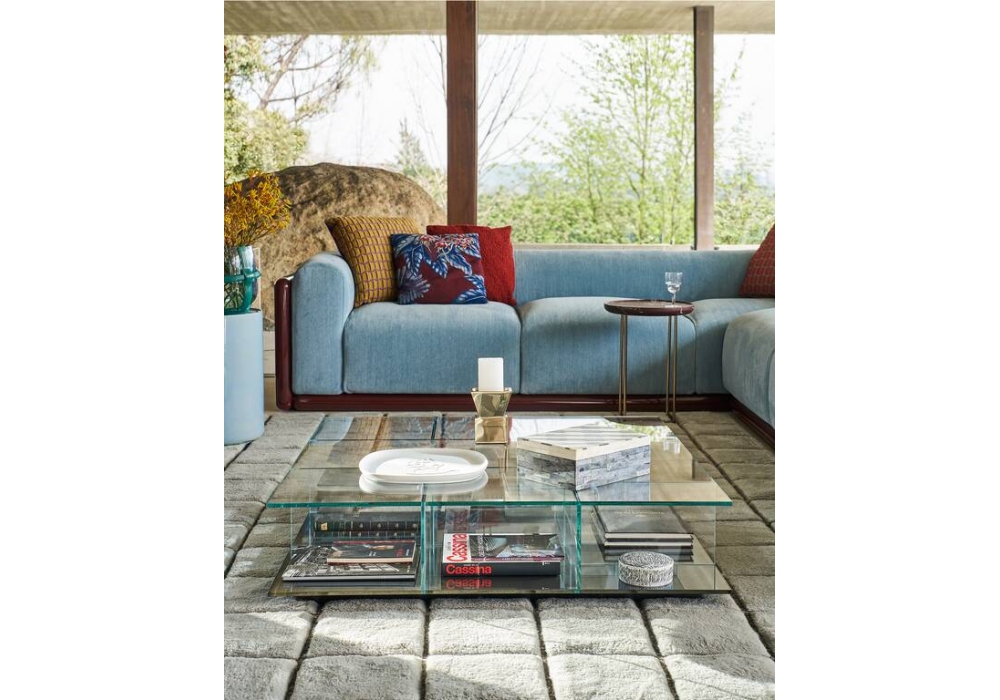 Cornaro W08 designed by Carlo Scarpa for Cassina is a linear or modular sofa made with a lacquered or stained ash structure and fabric upholstery. Available in different finishes.