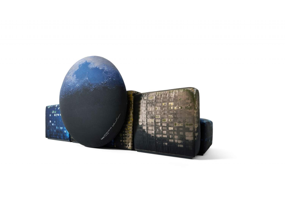 Notturno a New York designed by Gaetano Pesce for Cassina is a 3-seater sofa made with a special jacquard fabric covering with a three-dimensional effect. Limited edition of 50 pieces.