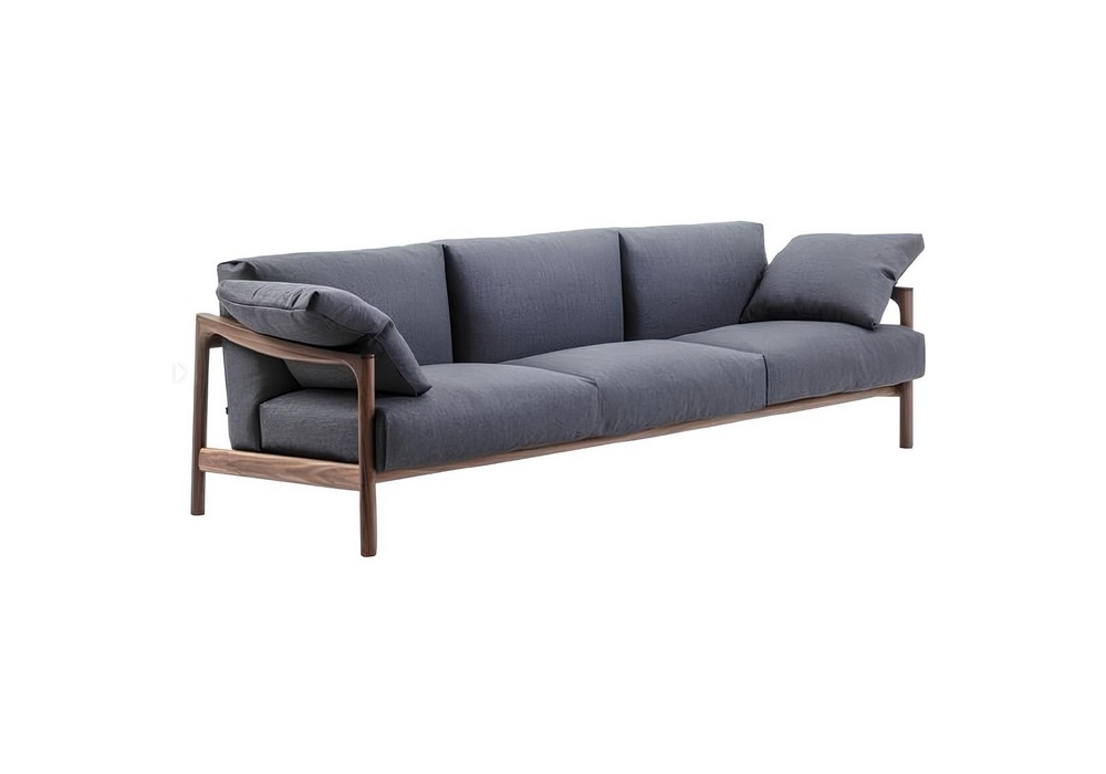 Vera designed by Gabriele & Oscar Buratti for Porada is a sofa or sofa with chaise longue in solid canaletta walnut, backrest in Cuoietto and upholstery in fabric or leather (removable). Two armrest cushions made of feathers always included. Available in different finishes and versions.