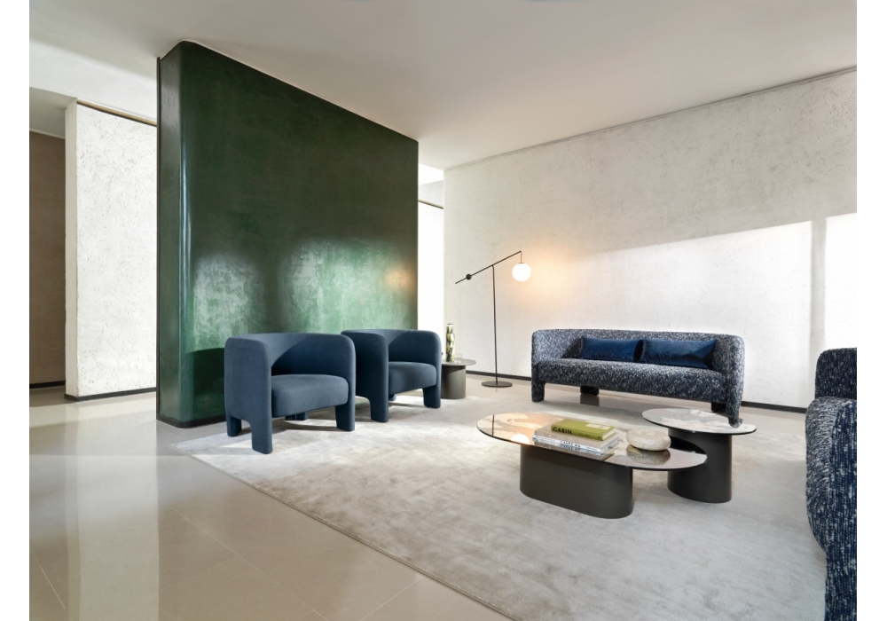 Cali designed by Dainelli Studio for Ditre Italia is a sofa characterized by load-bearing solid fir wood blocks with metal reinforcement bar. Upholstery in fabric or leather.
