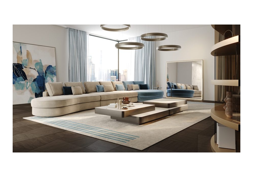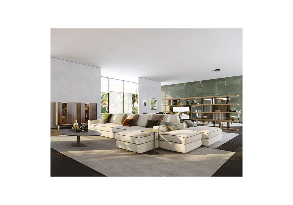 Adone Sofa designed by Emanuele Missaglia for Reflex Angelo is a linear or modular sofa with wooden structure padded with polyurethane foam. Additional protective covering in bonded fabric. Seat and back cushions in goose down with polyurethane insert. Upholstery available in leather or fabric.