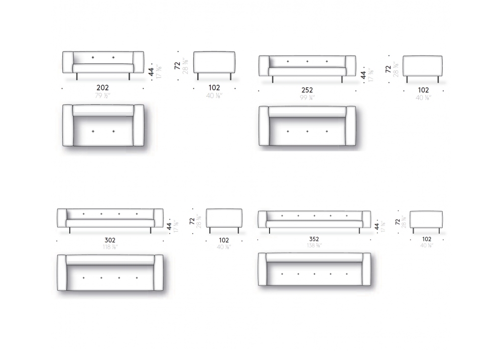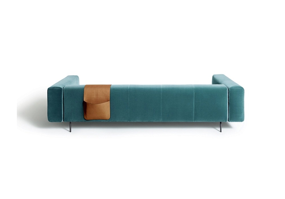 Erei designed by Elisa Ossino for DePadova is a sofa with a wooden supporting structure with elastic straps. The feet are in powder-coated steel in gunmetal or brick color with an adjustable insole in thermoplastic material. The padding is in polyurethane foam with different densities, memory foam and polyester wadding lined with polyester velvet with removable fabric or fixed leather upholstery. Headrest cushions in polyurethane foam and polyester wadding, lined with polyester velvet. Armrest pocket in leather with non-slip rear support. Erei is available in different models and finishes.