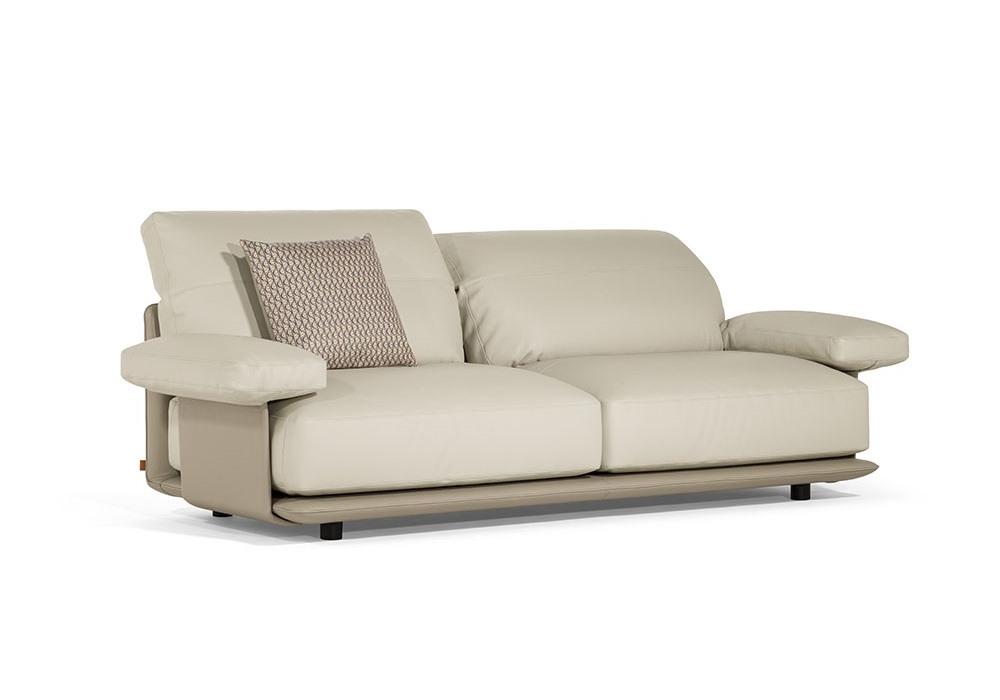 Blisscape designed by Ludovica Serafini + Roberto Palomba for Poltrona Frau is a linear or modular sofa with a metal frame on which rests the structure in solid Beech and Poplar and Birch plywood, lightly padded and upholstered in Pelle Frau® leather. The leather platform accommodates the rich removable cushioning of the seat, backrest and armrest, which can also be upholstered in Pelle Frau® leather or fabric. Each backrest cushion can be adjusted in height thanks to a bayonet mechanism, and the padding in differentiated areas is made with a technology similar to that of mattresses, to promote breathability, softness and shape retention.