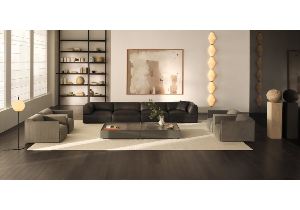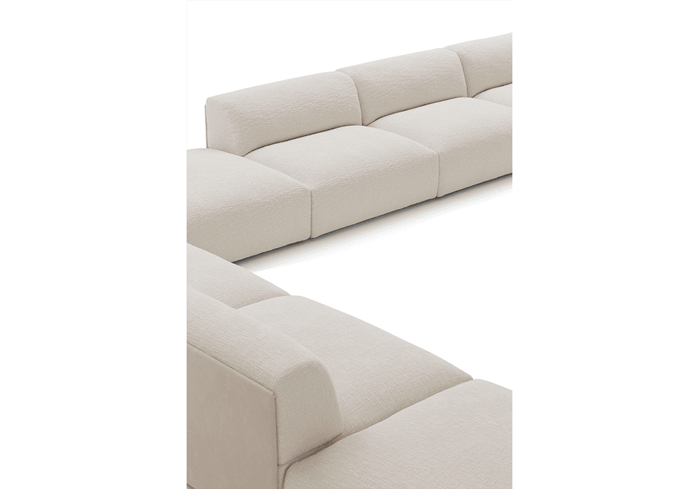 Hybla designed by Elisa Ossino for DePadova is a linear and modular sofa with a wooden structure and elastic straps, designed for long-lasting and customizable comfort. The external shell is made of HPL and polyurethane foam, covered in polyester velvet. Padding in polyurethane foam with different densities and recycled wadding fiber. Feet in thermoplastic material. Upholstery available in removable fabric version or fixed in leather and velvet, also for the external shell.