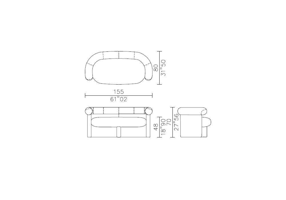 Jeanette designed by Andrea Parisio for Meridiani is a love seat with a central leg in beech wood stained black or lacquered glossy or matt. Upholstery in different fabrics.