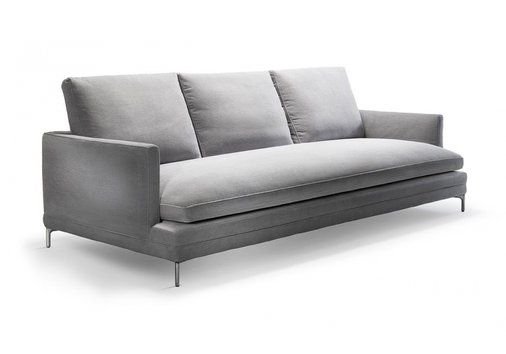 1331 William+ designed by Damian Williamson for Zanotta is a sofa with steel structure and fabric or leather upholstery. Feet in polished aluminum alloy, natural or black nickel-plated or black painted. Available in different dimensions.