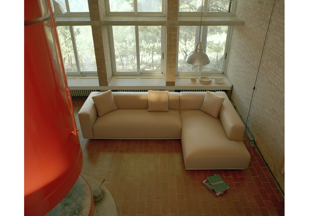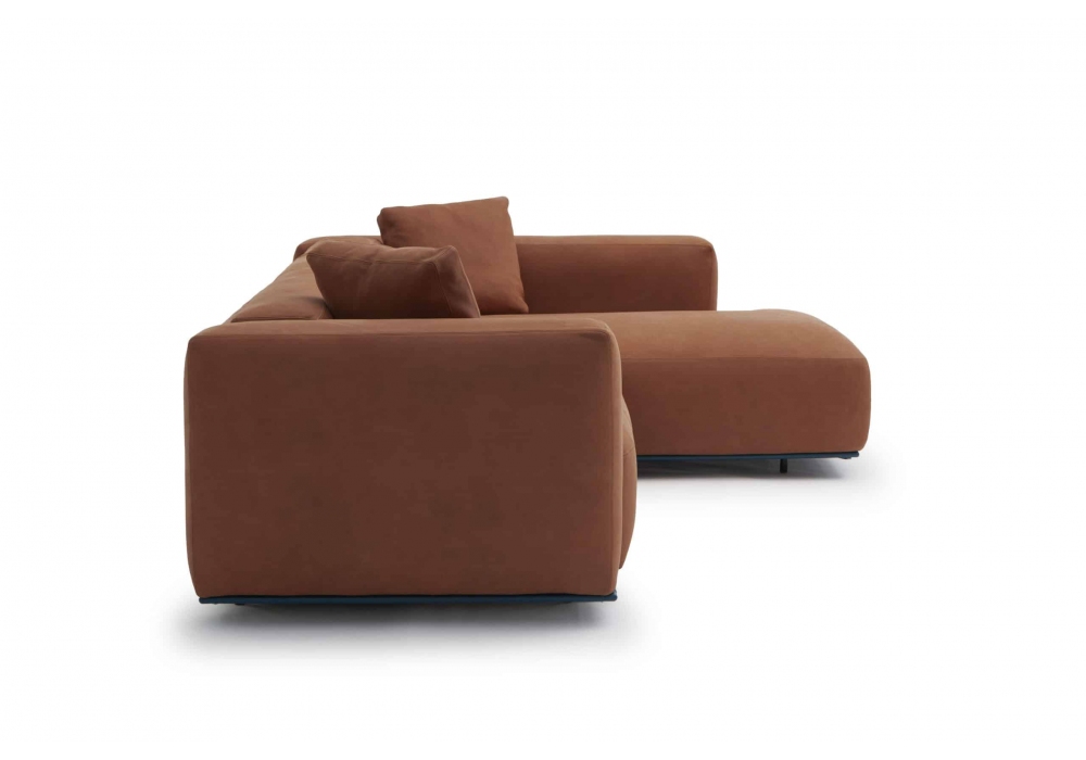 Ritz designed by Giulio Manzoni for Campeggi is a sofa bed, with a wooden frame and elastic springing in rubber and natural latex straps. The bed mechanism in epoxy powder coated steel allows for synchronized opening by tilting the backrest, with an electro-welded steel mesh base. The padding is in CFC-free polyurethane foam with differentiated density and polyester wadding. The steel base is available in a satin finish, matt petrol blue or matt black. It includes a 16 cm high, double density, removable, breathable, orthopedic, natural and anatomical foam mattress.