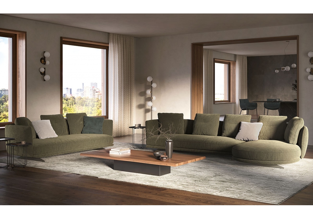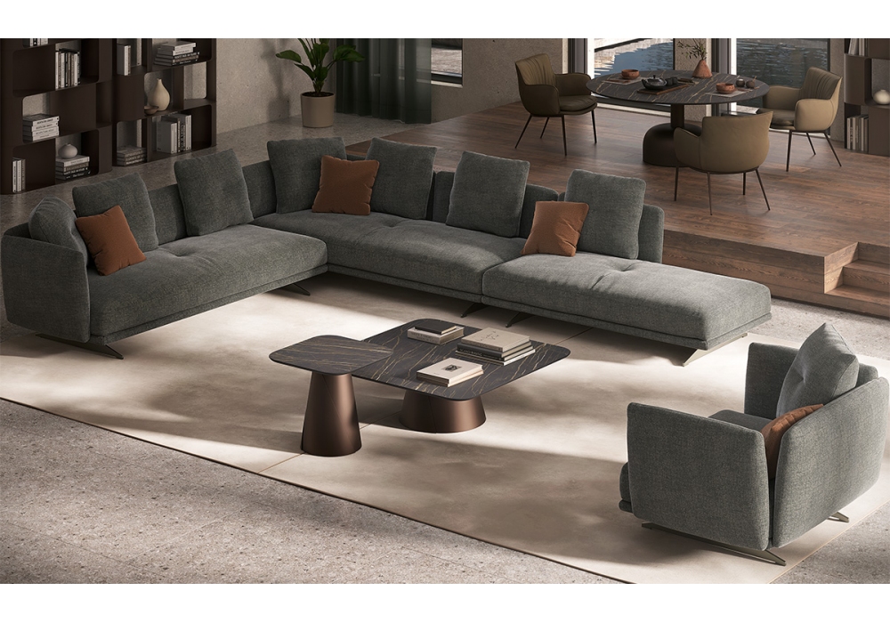 Douglas designed by Cattelan Italia is a sofa with a birch plywood structure and variable density polyurethane padding with resin-coated synthetic fiber covering. It features unique and modular models. Available in different finishes and dimensions.