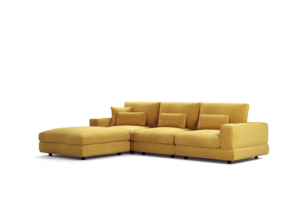 Talìa designed by Kico is a sofa with fully removable covers. It features a solid plywood and MDF frame and a goose down seat for firm yet cozy comfort. The shell is padded with 35% open-cell polyurethane foam with polyester wadding, while the backrests are filled with goose down. Fabric upholstery.