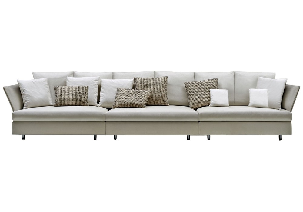 Holiday is a sofa designed by Ferruccio Laviani for Molteni&C. Ferruccio Laviani proposes a new concept sofa: evocative, less basic, more decorative, based on emotional comfort. Holiday features a wrap-around back against which the cushions are arranged, a light frame, chic, comfy, characterful seats, sartorial techniques for the details, and a host of different fabrics and leathers. Not just one, but numerous sofas, thanks to different elements that allow for linear or angular compositions and informal seating.