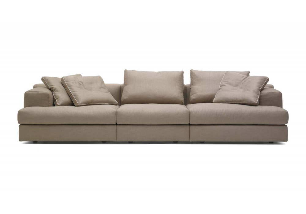 Miloe designed by Piero Lissoni for Cassina is a sofa made with feather and polyester wadding padding and removable fabric or leather upholstery.