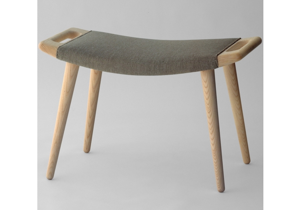 PP120 designed by Hans J. Wegner for PP Møbler has a wooden frame and comes with an upholstered seat in either fabric or leather. The handles can be specified with a wood type that differs from the legs. The stool is a strong construction with legs that penetrate and interlock with the solid beech wood frame using traditional joinery, and the upholstery is made of horsehair and cotton. It may seem as a trivial product, but it is a genuine piece of exquisite crafts.