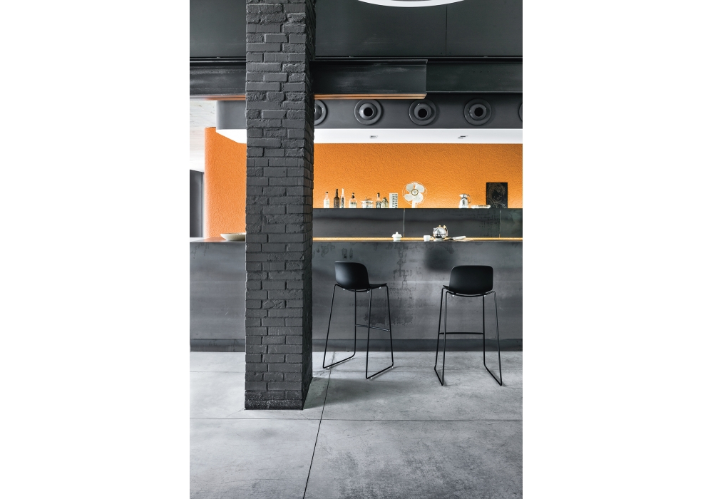 Troy Polypropylene designed by Marcel Wanders for Magis is a high stackable stool with chromed or painted steel tube frame and polypropylene seat. Available in different finishes.