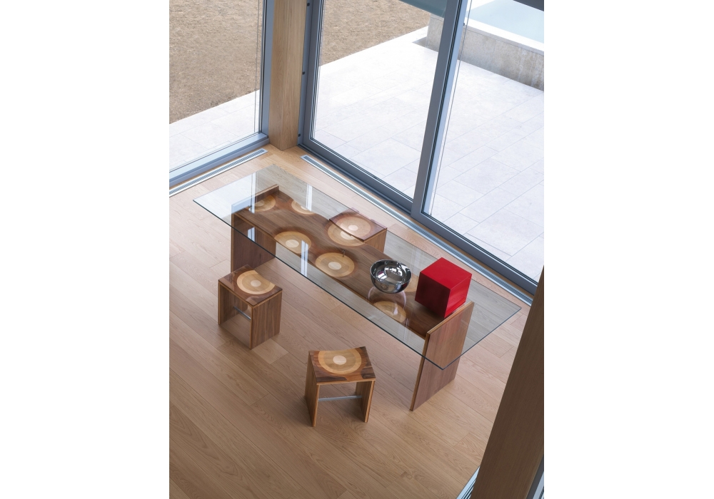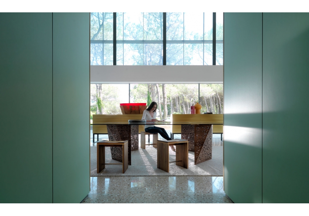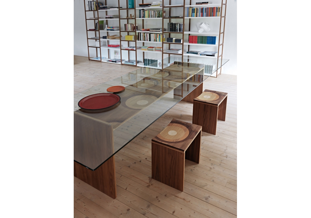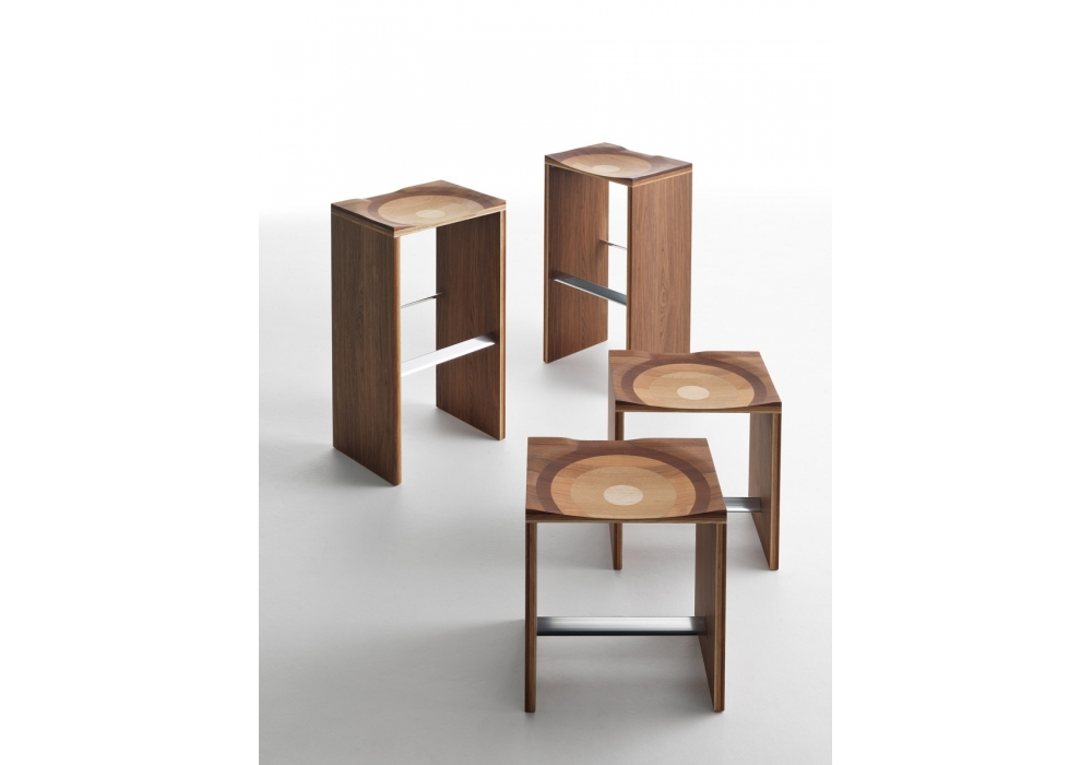 Ripples designed by Toyo Ito for Casamania & Horm is a stool made with a special and exclusive plywood of five different types of wood (Canaletto walnut, mahogany, cherry, oak and ash). Footrest in extruded anodized aluminium.