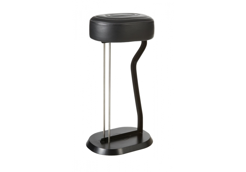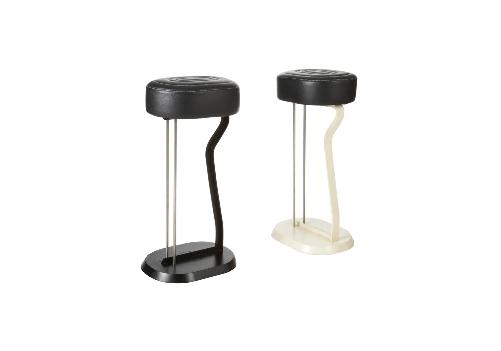 Bar Stool No. 2 designed by Eileen Gray for ClassiCon is a stool with frame in sectional steel, mounted on a steel base, lacquered in black or cream white. Two brushed stainless steel bars. Upholstery: polyurethane with quilting cotton, cover in leather. Available in different finishes.