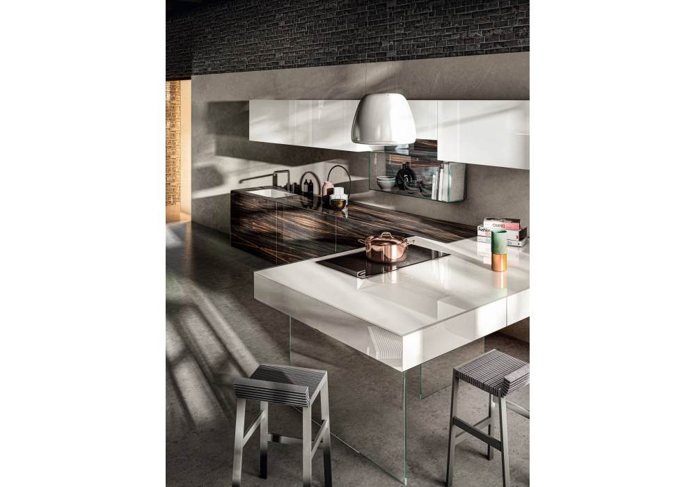 Steps designed by Monica Graffeo for Lago is an eco-sustainable stool. Structure in aluminium, seat and chair back made of felt.