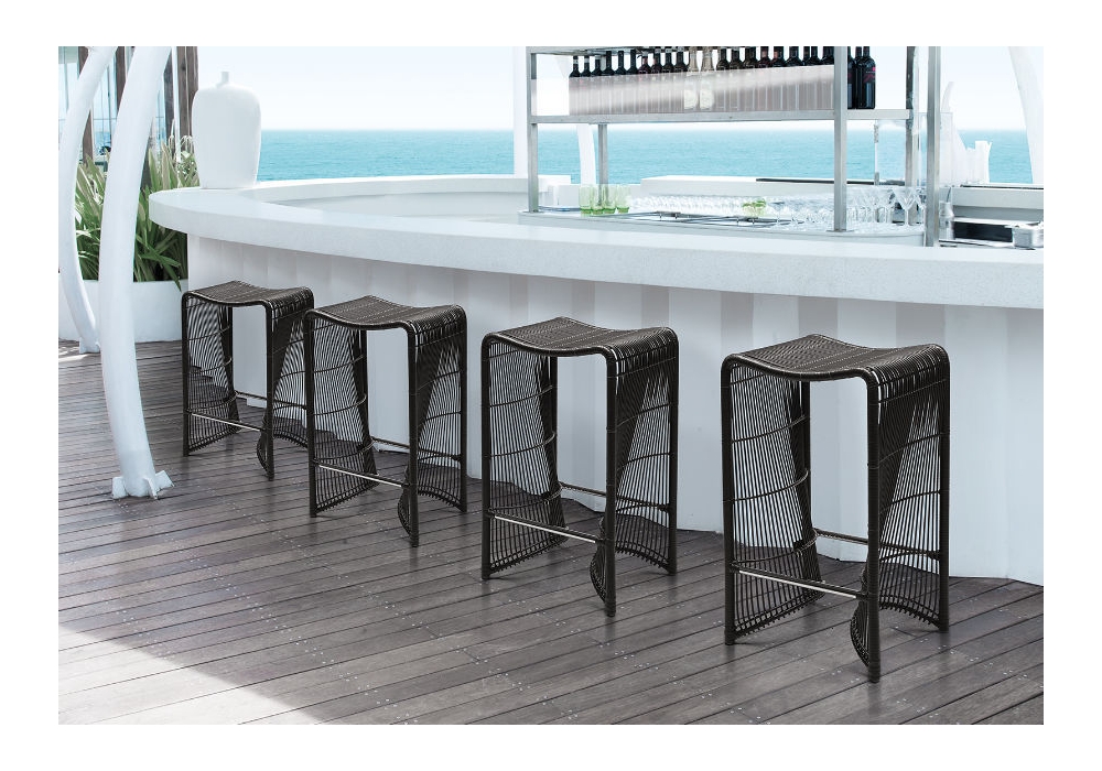 Pigalle designed by Kenneth Cobonpue is a stool made with steel and natural abaca for indoor, polyethylene for outdoor. The strands of abaca rope are individually hand-tied with more than 3000 knots over a hand-sculpted steel frame. Available in two finishes.