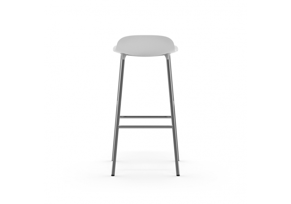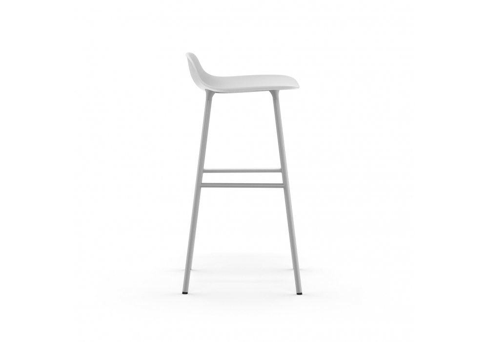 Form, designed by Simon Legald for Normann Copenhagen is a stool, with legs and supporting structure in steel, and with seat in plastic material. Form is available in different finishes and in two different sizes.