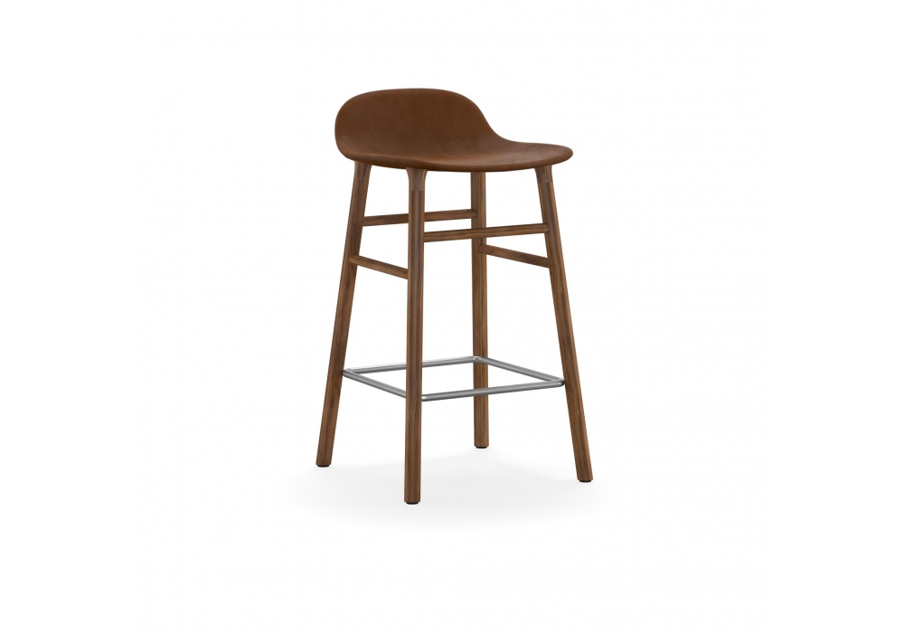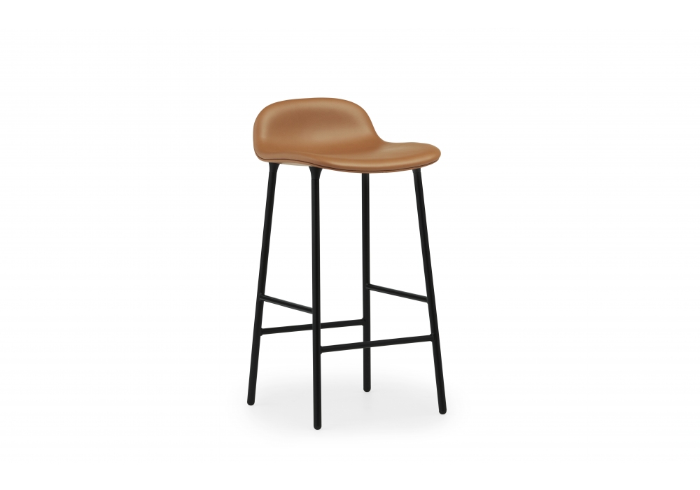 Form designed by Simon Legald for Normann Copenhagen is a stool, with legs in steel or wood and seat in PU foam covered in fabric or leather. Form is available in different finishes of wood or steel, and different colors of leather or fabric.