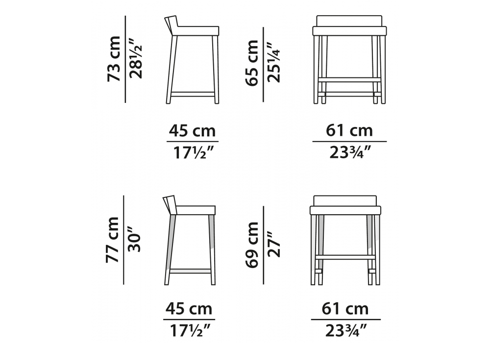 Oslo designed by Paola Navone for Baxter is a stool with structure and base in wengé-stained ash with back in double-panelled plywood. Filling in differentiated density polyurethane foam. Springing with woven elastic straps in covered rubber. Finishing with visible edging only in the leather legs version only. Available in two dimensions.