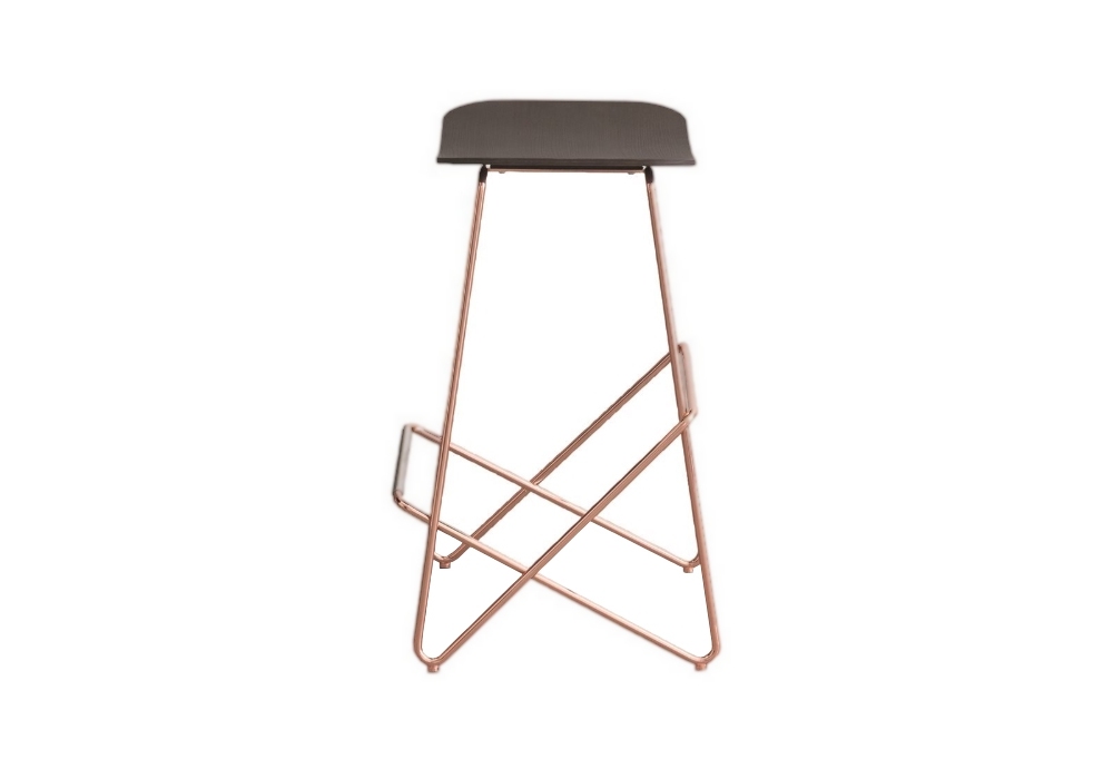 Endless 719 designed by Arik Levy for Desalto is a stool with steel rod base. Seat in lacquered MDF or veneer oak. The footrest is protected by a stainless steel profile except in the chrome-plated version. Available in two sizes.