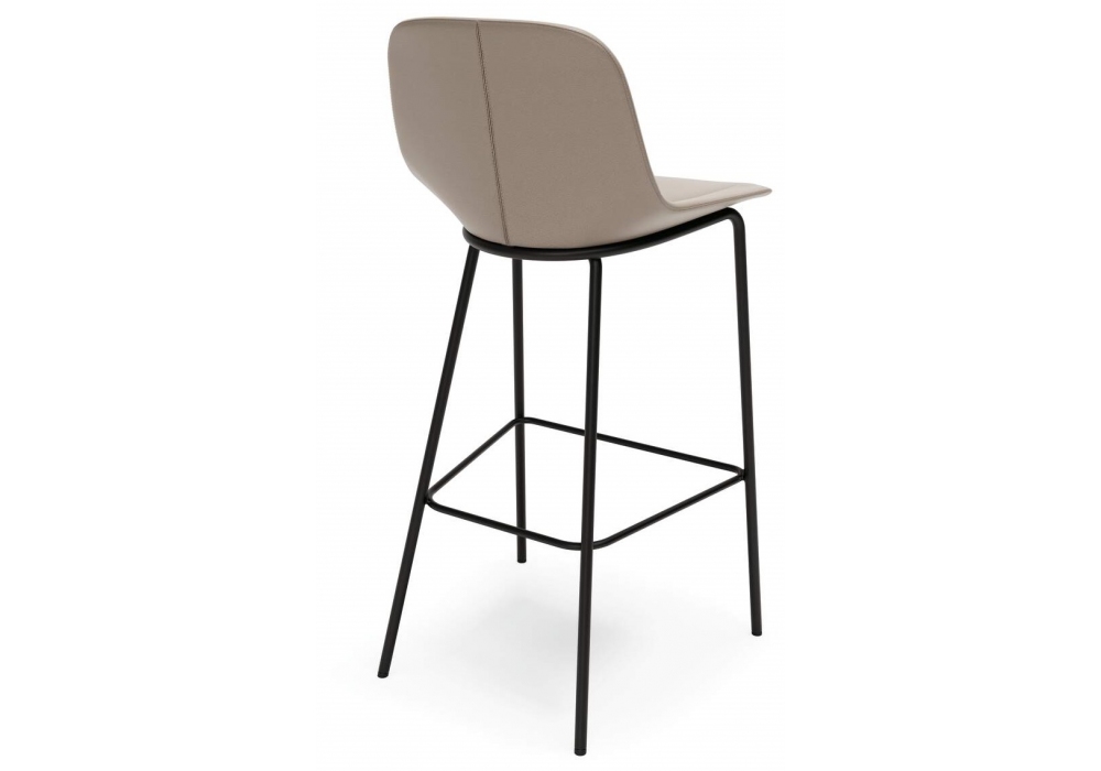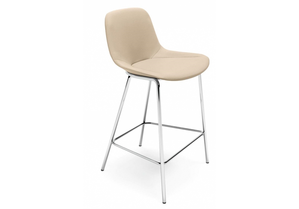 Sheru designed by Eoos for Walter Knoll is a stool with footrest and 4-legged base in polished chrome or varnished metal. Covering in fabric or leather. Available in two dimensions.