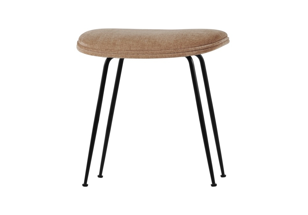 Beetle designed by GamFratesi for Gubi is a stool with legs in powder coated steel in black, brass or black chrome finish. Upholstery in fabric or leather.