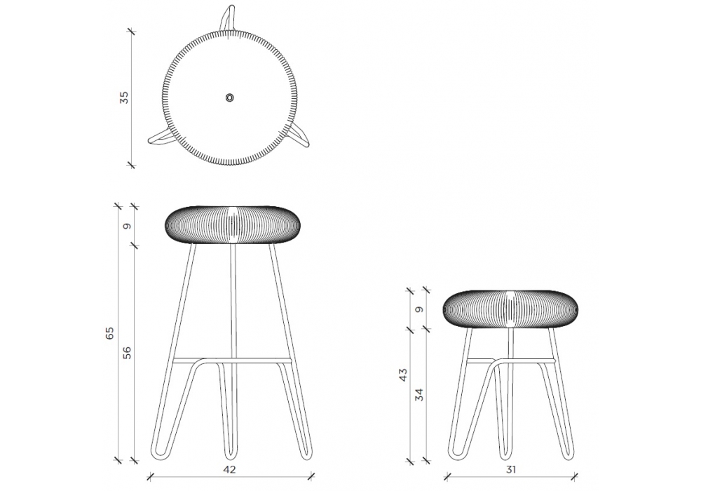 Donut All Black designed by Alessandra Baldereschi for Mogg is a stool made with upholstered seat in black rope and structure in painted metal. Available in different dimensions.