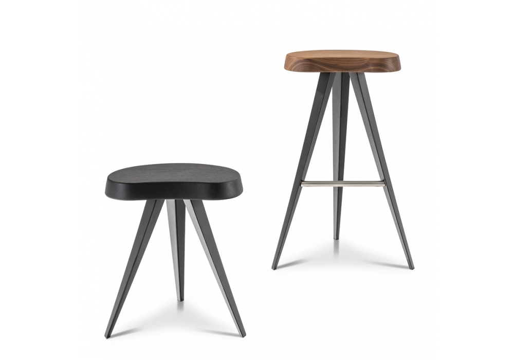 531 Mexique Stool designed by Charlotte Perriand for Cassina is a stool available in two sizes. Made of solid wood, it has distinctly geometric legs compared to the irregular shape of the seat.