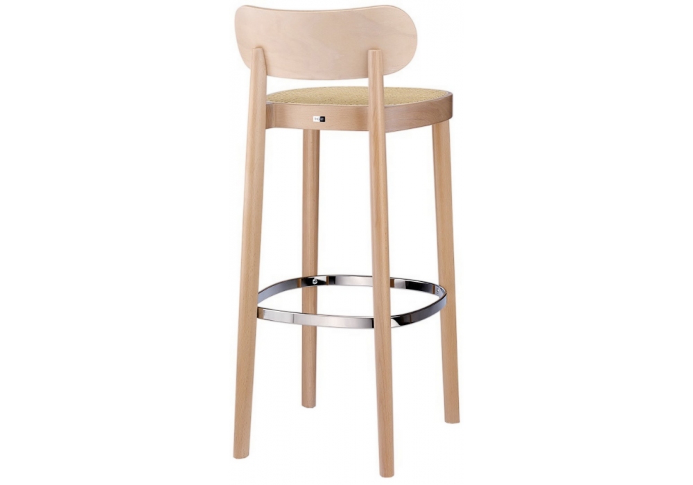 118 H / HT designed by Sebastian Herkner for Thonet is a bar stool with structure in solid beech wood, in different finishes. Seat in woven rattan cane and chromed footrest. Also available in 2 heights.