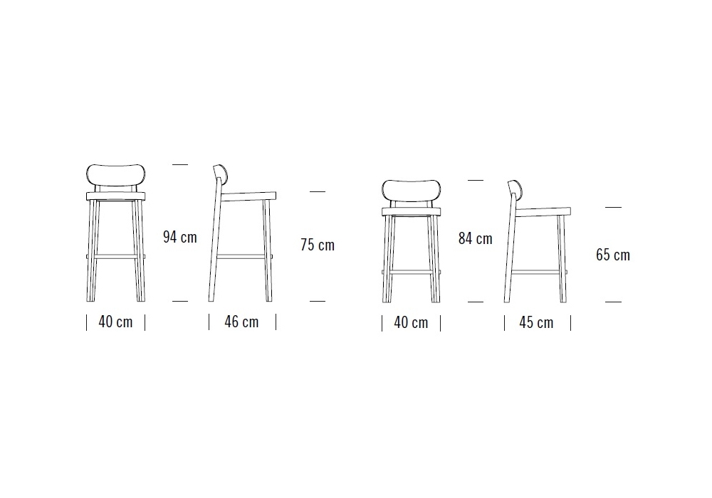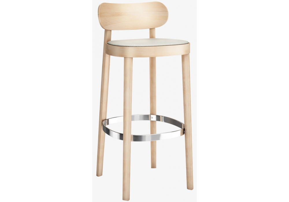 118 SPH / SPHT designed by Sebastian Herkner for Thonet is a bar stool with structure in solid beech wood, in different finishes. Seat upholstered in fabric, hide or leather, chromed footrest. Also available in 2 heights.