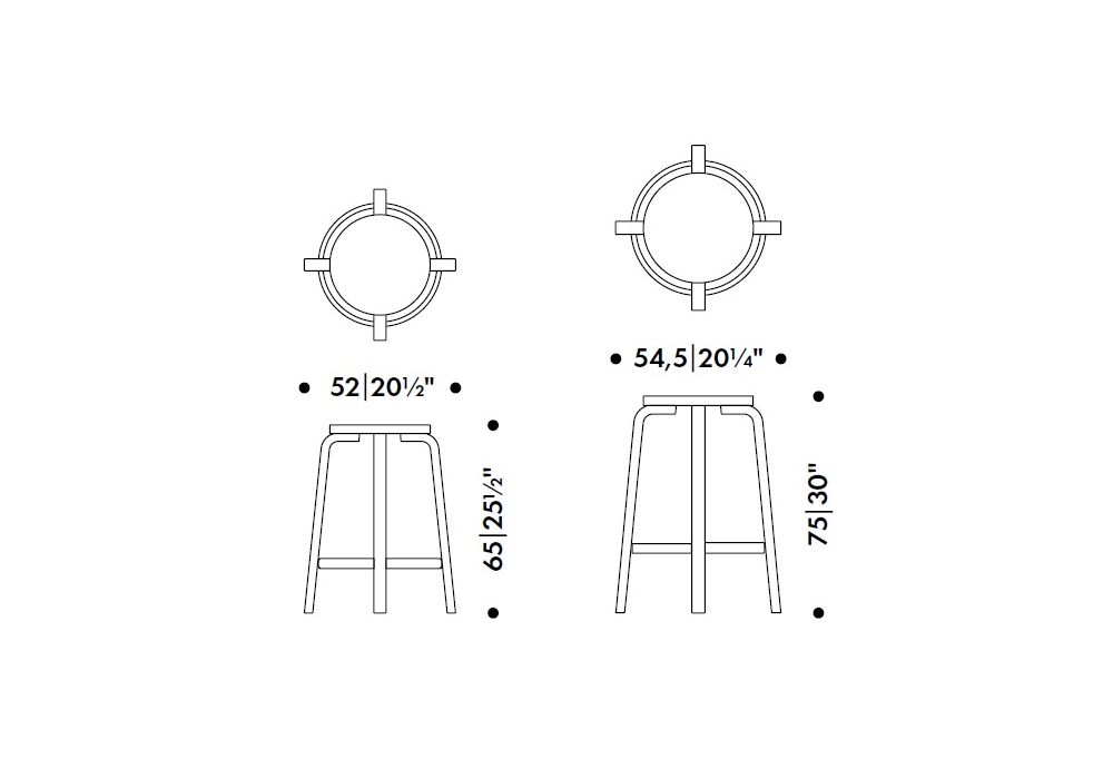 Bar Stool 64 designed by Alvar Aalto for Artek is a bar stool with legs and seat edge in solid birch available in different finishes and dimensions.