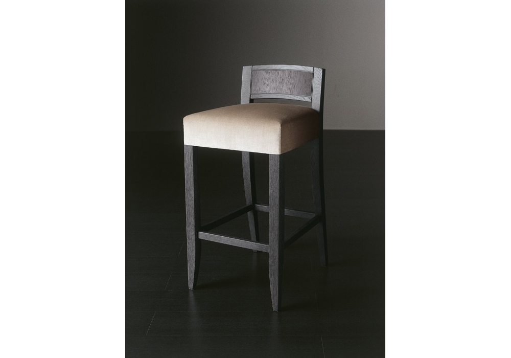 Kerr designed by Andrea Parisio for Meridiani is a stool with padded seat in non-deformable polyurethane and frame in stained oak. Upholstery available in fabric or leather.
