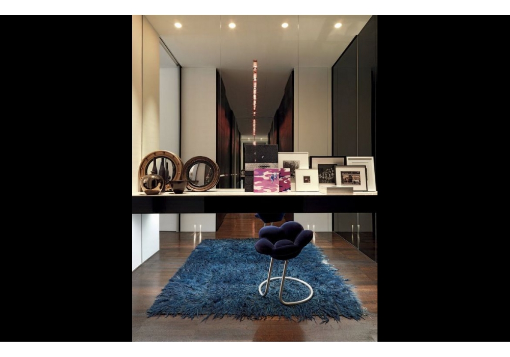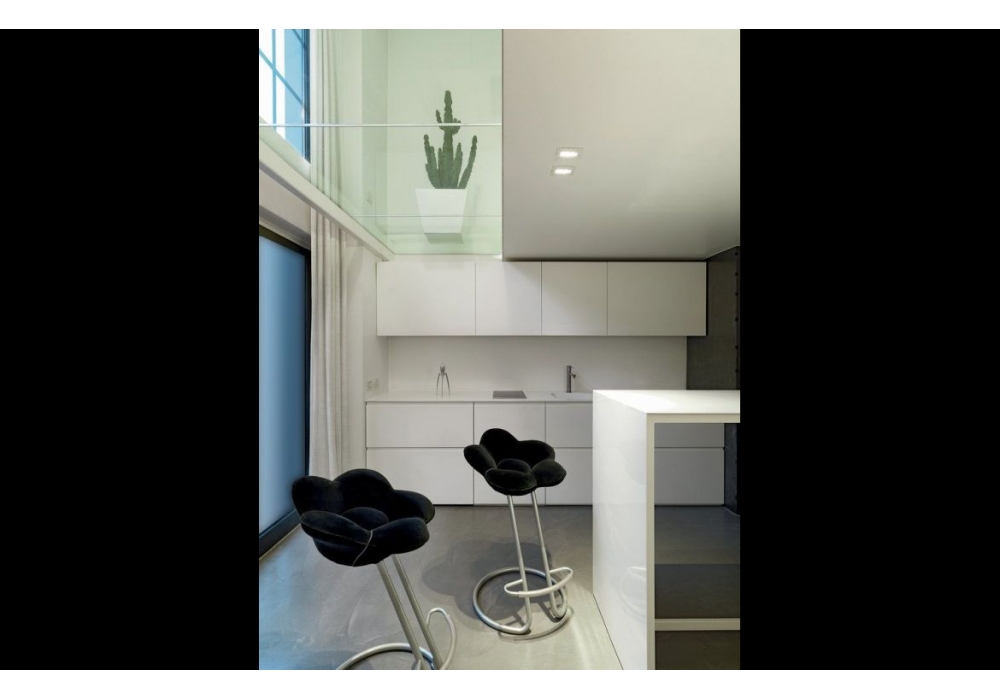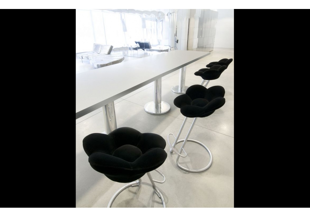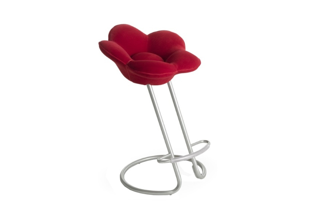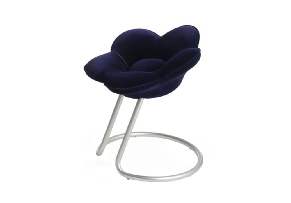Soshun designed by Masanori Umeda for Edra is a stool in the shape of a flower with an inclined stem. Supporting structure in tubular steel painted in metallic gray, seat upholstered in polyurethane foam covered in non-removable velvet, available in different colours and two heights.