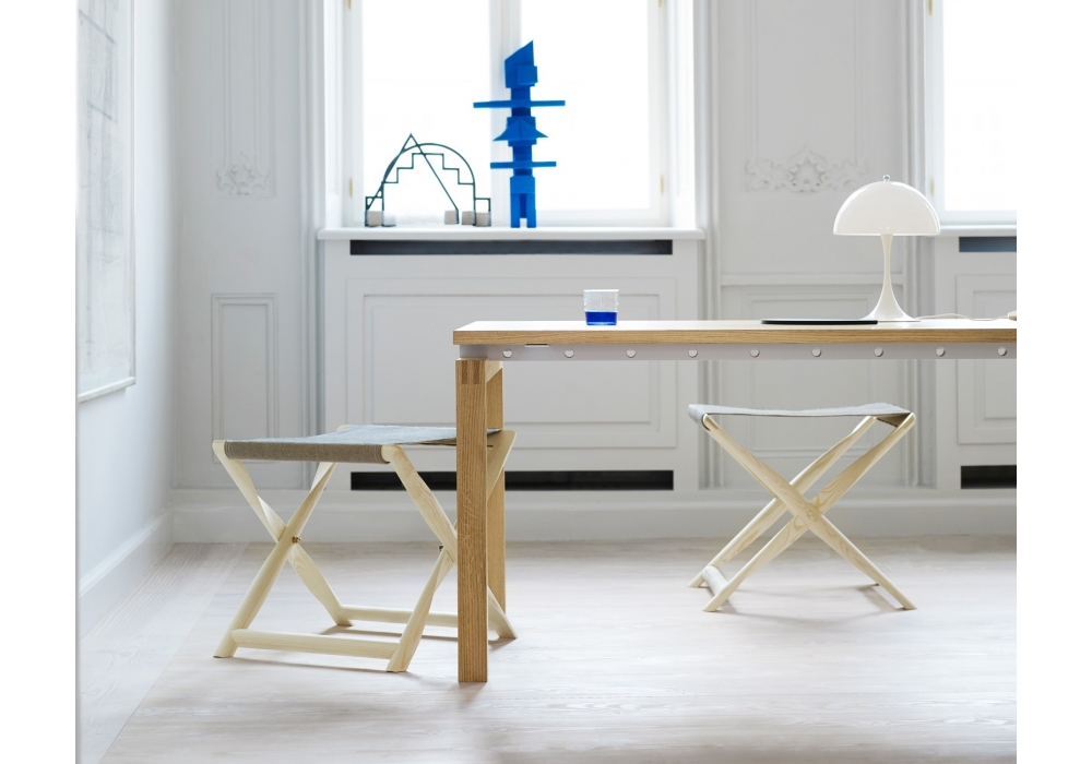 KK87830/KK87831 Propeller Stool & Tray designed by Kaare Klint for Carl Hansen & Søn is a stool in solid wood in ash or oak available in different finishes. Seat in natural canvas or leather. It is possible to add a solid wood tray in the same color as the structure.