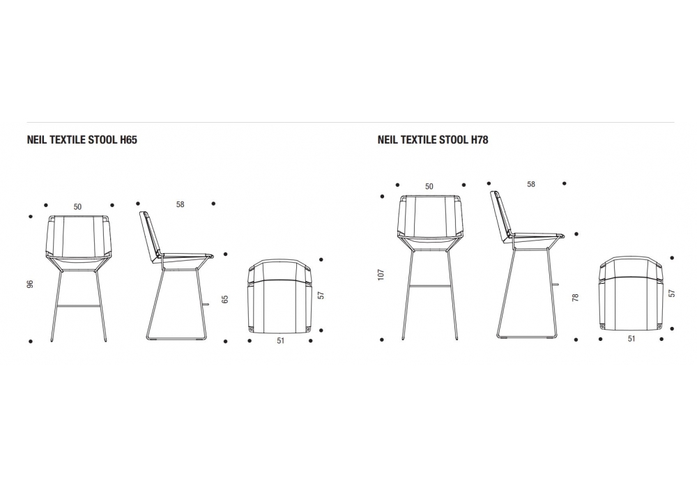Neil Textile Stool designed by Jean Marie Massaud for MDF Italia is a stool with backrest and seat supporting structure made of steel wire and available in glossy black chrome galvanic finish. The upholstery is made of fabric, in different finishes.